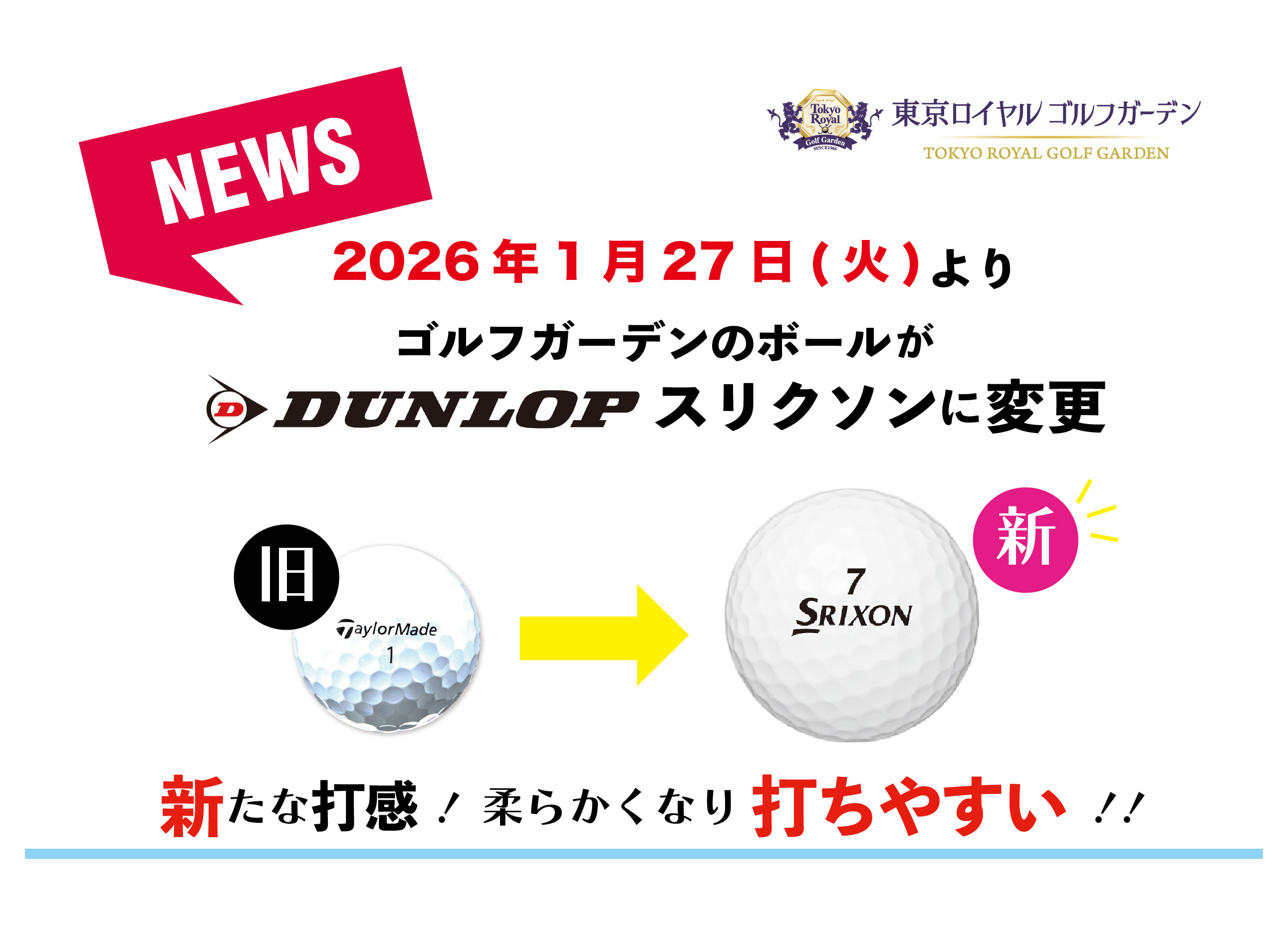 1月27日(火)より東京ロイヤルゴルフガーデンのボールがDUNLOPスリクソンに変わります!