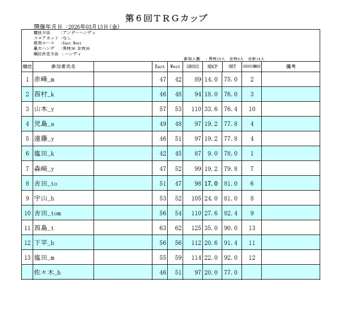 第6回TRGカップ 結果